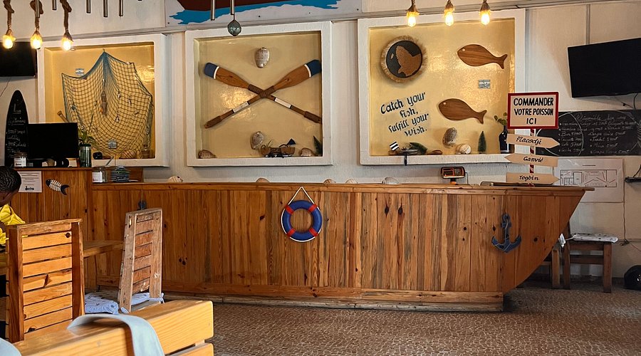 Nouveau restaurant spécialisé dans les poissons et fruits de mer, situé en plein centre-ville de Cotonou. Concept original 2 en 1 : restauration rapide d'un côté et poissonnerie de l'autre. Petit-déjeuner également servi.
